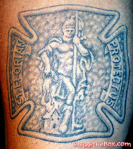 Country: United States State: Florida Fire Dept: Broward County Fire rescue Year Started in Fire Service: 2001 Rank: Other Description: I wanted a tattoo that represented both tradition and history of the fire service. Who better than St. Florian, who takes care of all firemen, regardless of creed, race, gender, volunteer, or paid. I placed him within a maltese cross, to remind us all, that here on earth, we must take care of one another, as did the Knights of St. John. Tattoo Location: Right Forearm Year Inked: 2006 Studio: Coolcat Tattoo Artist: Dan King |