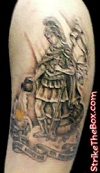 Michael Monohan Country: United States State: Indiana Fire Dept: St. Matthews Fire Protection District Year Started in Fire Service: 2005 Rank: Firefighter (private) Description: The reason behind this tattoo is basically to keep me safe. the saying at the bottom is in Latin and means "when you walk through fire, you shall not be burned." Tattoo Location: Upper Right Arm Year Inked: 2007 Studio: Ageless Art Artist: Phil |