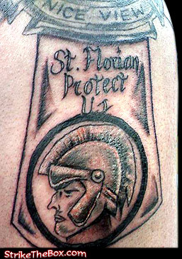 Description: have wanted a tattoo ever since I joined the fire service in 1996. I wanted a tat that covered my love for God and the fire service -- it reminds me to pray for our protection constantly.