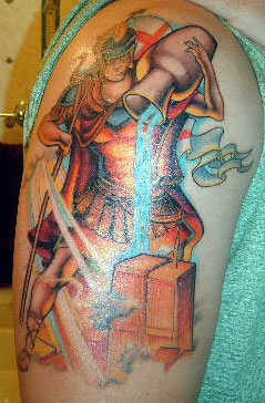 country: United States Fire Dept: Bellmore State: New York Years on job: 7 rank: Firefighter (private) description: A Modern Day Spin Of St. Florian, Something Different studio: Lark Tattoo artist: Tommy Helm |