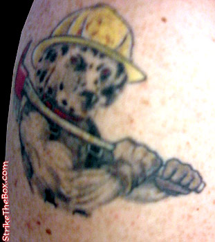 Country: United States State: Ohio Fire Dept: Kettering Year Started in Fire Service: 1999 Rank: Firefighter (private) Description: I saw this dalmation on a shirt and loved it. The rest is history! Tattoo Location: Upper Right Arm Year Inked: 2005 Studio: Extreme Tattoo Artist: Rich |