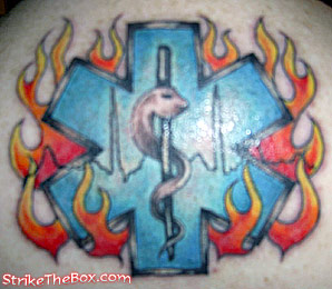 Diane Sanders Country: United States State: Ohio Fire Dept: Sheffield Township Fire Dept Year Started in Fire Service: 2002 Description: I have always wanted a star of life to represent my love of EMS. Tattoo Location: Upper back/lower neck Year Inked: 2007 Studio: Therapy Ink Artist: Gina |