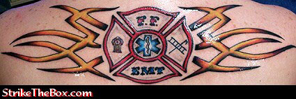 Country: United States Fire Dept: Algoma Fire & Rescue State: Wisconsin Years on job: 1 Rank: Other Description: I am a Firefighter and an EMT for the city of Algoma, WI. Tattoo Location: Back Year Inked: 9/5/2006 Studio: Unleashed Tattoo Illustrations Artist: Jesse |