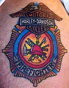 name: James R Aitken Country: United States Fire Dept: Tri-County Fire Protection District State: Illinois Years on job: 18 Rank: Other Description: Bought the Harley Davidson Firefighter knife and was Tattoo Location: Right upper arm Year Inked: 2005 Studio: Living Color Tattoo (Mattoon Illinois) Artist: Dave Baldwin aka Toad |