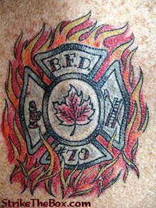 AARON BARKER Country: Canada Fire Dept: City Of Brantford State: Ontario Years on job: 3 yrs Rank: Firefighter (private) Description: For years I've wanted a tattoo relating to the best job in the world!!I also thought it was very important to have a maple leaf as a I'm a proud Canadian!! Most impotantly to me is my family and what better way to always have my daughter with me then to have her name on my back. Look in the flames on the bottom and you'll see her name there,Hayley Tattoo Location: Center of back, between my shoulders Year Inked: 2006 Studio: Passage in Toronto Artist: Jay |