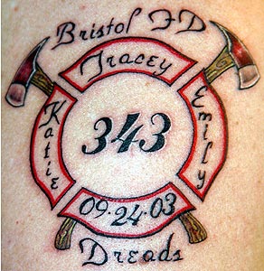 name: Gary Country: United States Fire Dept: Bristol State: Rhode Island Years on job: 18 Rank: Firefighter (private) Description: The three names are my daughter's and wife. Now they are Tattoo Location: Right Arm Year Inked: 2006 Studio: Color Creations/East Providence RI |