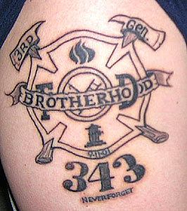 also i wanted to honor the 343 fallen firefighters on september 11th Tattoo Location: Right Shoulder Year Inked: 2006 Studio: wildlines Tattoos Artist: Willie |