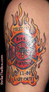 Steve Country: United States Fire Dept: Westwood Fire Company, Chester county State: Pennsylvania Years on job: 3 Rank: Firefighter (private) Description: I wanted to remember my brothers lost that day. Tattoo Location: arm Year Inked: 2006 Studio: M&M TATTOOING Artist: Marlene and Monica |