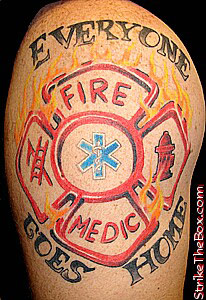 Chris Country: United States Fire Dept: Goodwill Fire Company State: Pennsylvania Years on job: 21 Rank: Assistant Chief Description: I found four different tattoos from this web-site and I showed Joe what I wanted from all four of them and he put it together. It covers every part of my life, volunteer and career. The last part was the wording above and below the maltese cross. Everyday I work to make sure that myself and everybody around me is safe so we can all go home at the end of the day. Tattoo Location: Right Arm Year Inked: Joe Martin Studio: A Built To Last Tattoo, York, PA Artist: Joe Martin |