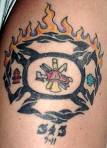 name: A.J. Light Country: United States Fire Dept: Johnson City Fire Dept and Warriors Path Vol Fire Dept State: Tennessee Years on job: 6 Rank: Firefighter (private) Description: I seen a tribal maltese cross tattoo on this site that i liked and i changed it to what i liked Tattoo Location: right arm Year Inked: 2005 Studio: Choppers Ink Artist: Steve |