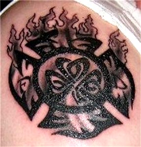 name: J.W. Martin Country: United States Fire Dept: Grass Lake Charter Twp. State: Michigan Years on job: 2 Rank: Firefighter (private) Description: Tribal maltese with a tribal clover for good luck Tattoo Location: Right arm Year Inked: 2006 Studio: Underground Ink Jackson, MI Artist: Fat Kid |