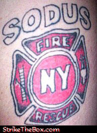 Todd Speers Country: United States Fire Dept: Sodus Volunteer State: New York Years on job: 1 Rank: Firefighter (private) Description: The story behind this tattoo is bizarre. Its the outline of my companies hat. I went and had this done right after a fully involved house fire. During the tattoo I got a call for a car fire and because of that I jumped and have a little mess up because of it. Tattoo Location: Left Arm Year Inked: 2006 Studio: Tattoo Larry Artist: Larry |
