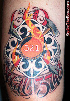 Kel Stansell Country: United States Fire Dept: Cleveland FIre Dept. State: Tennessee Years on job: 1 Rank: Firefighter (private) Description: I got a stylized maltese cross with my local union number and CFD for cleveland fire dept.. This tattoo was designed by my artist after we shared ideas my local is important to me and I wanted to display that in my tattoo. Tattoo Location: arm Year Inked: 2006 Studio: Imagine Tattoo Studio, Cleveland TN Artist: James Deagler |