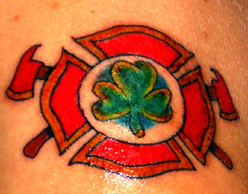 Tim Sullivan Country: United States Fire Dept: Georgetown State: Massachusetts Years on job: 1 Rank: Firefighter (private) Description: I have always wanted a tattoo but I was never sure about what I wanted. Then I decided that this was a passion that I would never lose so I wanted to display it with my heritage. Tattoo Location: Upper left arm Year Inked: 2006 Studio: Jim's (Seabrook) Artist: Jeff D |