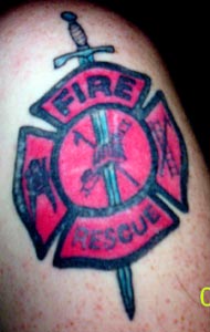 name: Thomas Thayer Country: United States Fire Dept: Cattaraugus Volunteer Fire Dept State: New York Years on job: 2 Rank: Firefighter (private) Description: This is actually a reproduction of the maltese cross on the left sleeve of my fire jacket. I had an excalibur sword through it because the sword represents the honor and strength of King Arthur. I Tattoo Location: Left Upper Shoulder Year Inked: 2003 Studio: Hamburg Dermographics Artist: Mike Carr |