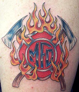 name: Andrew Vossekuil Country: United States Fire Dept: Milwaukee Fire Department State: Wisconsin Years on job: 10 Rank: Firefighter (private) Description: This was my first tattoo and I wanted to get something that represented my department. Tattoo Location: Left upper arm Year Inked: 2005 Studio: the black dragon Artist: skully(brett) |