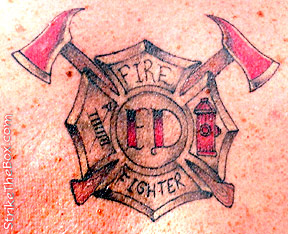Country: United States State: California Fire Dept: OLD SHASTA F.D. Year Started in Fire Service: 1998 Rank: Firefighter (private) Description: My tattoo is a work in progress, I haven't decided what else I'm going to do yet. I volunteer, work as a seasonal fire fighter forest service hand & engine crews, fighting fire is the only thing I'm good at or know & love. Tattoo Location: Top Of Spine Year Inked: 2006 Studio: Electric Chair Artist: Danny |
