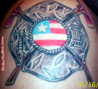 Country: United States State: North Carolina Fire Dept: Wrightsboro VFD Year Started in Fire Service: 1997 Rank: Firefighter (private) Description: Ive wanted some type of tattoo to show my dedication to the fire service since i first became a volunteer.I saw a picture that kind of looked close to how my tattoo was.changed a few things so it would look good as a tattoo..and here it is. Tattoo Location: right shoulder Year Inked: 2007 Studio: Marks of Distinction Artist: Johnathan |