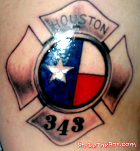 Country: United States State: Texas Fire Dept: South Montgomery County Year Started in Fire Service: 2006 Rank: Firefighter (private) Description: I wanted something to represent my passion of what I like to do and the brotherhood I'm surround with. Tattoo Location: right upper arm Year Inked: 2007 Studio: Phat Cat Artist: Yael |