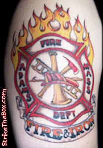 Country: United States State: Massachusetts Fire Dept: Adams Fire Dept Year Started In Fire Service: 1999 Rank: Firefighter (private) Description: My tattoo shows my love of the dept and our motorcycle club. Tattoo Location: Upper Right Arm (shoulder) Year Inked: 2007 Studio: http://www.intradermaldesigns.net Artist: Wesley Lamore |