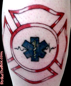 Country: United States State: Massachusetts Fire Dept: Bondsville Fire Department Year Started in Fire Service: 2003 Rank: Lieutenant Description: Well, when I turned 21 I wanted something that would always be with me reminding me of my EMS service, hence, the Star of Life. The maltese cross was added on June 2nd 2007 to show my 4 dedicated years to the fire service. Tattoo Location: Left Calf Year Inked: Star of life - April 2007 / Maltese Cross - June 2nd 2007 Studio: Milltown Ink Artist: Star of Life - Lance Ferrell / Maltese Cross - Phil Olivera |
