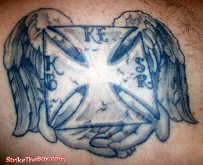 Country: United States State: Texas Fire Dept: Victoria Fire Dept Year Started in Fire Service: 2004 Rank: Firefighter (private) Description: My wife and girls mean the world to me so I incorporated my love for them and my job into this tat. They are always worried about my safety. This is my "Guardian Angel". The initials are those of my wife and kids. The bottom is left empty just in case we have another child. Tattoo Location: Left shoulder blade Year Inked: 2005 Studio: Forbidden City Tattoos Artist: Joe |