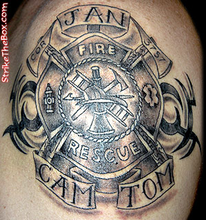 Country: United States State: California Fire Dept: Corona Fire Department Year Started in Fire Service: 1972 Rank: Chief Description: The tattoo symbolizes my love for my family, the support my family has given to my career and the support my career has given to my family. Tattoo Location: Left upper arm/shoulder Year Inked: 2007 Studio: Liberty Tattoo-Atlanta, GA Artist: Chris Howell |