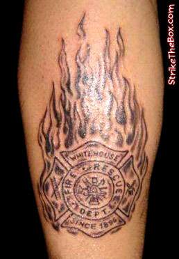 Country: United States State: Ohio Fire Dept: Whitehouse Year Started in Fire Service: 2004 Rank: Firefighter (private) Description: My first department. Grew up around with my Father and Granfather on also. My home. Tattoo Location: left calf Year Inked: 2005 Studio: Needlemasters |