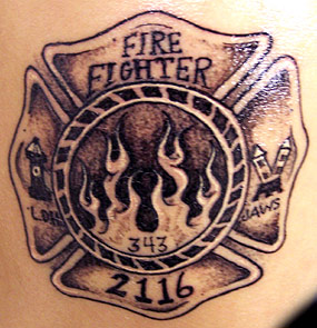 Josh Stellwag Country: United States State: New Jersey Fire Dept: Delran Year Started in Fire Service: May 2003 Rank: Firefighter (private) Description: The tattoo is based off of our station patch, with some minor changes. The 2116 represents my line number, I decided to get custom flames and the 343 is in memory of the fallin firefighters who lost their lives on 9/11... Tattoo Location: Right shoulder Year Inked: 01/03/08 Studio: got ink? Artist: Vicki |