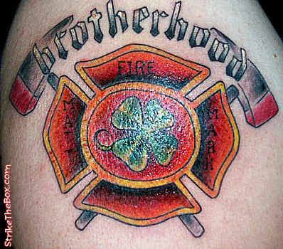 Country: United States State: Ohio Fire Dept: Mount Gilead Fire Dept. Year Started in Fire Service: 2006 Rank: Firefighter (private) Description: The tattoo reflects my irish heritage and I had my name and my brothers entered in the cross since we both work as firefighters. The bottom cross panel was left blank in case my younger brother who is starting fire school earns the right to have his name on it. Tattoo Location: Right upper arm Year Inked: 2008 Studio: D and J's |