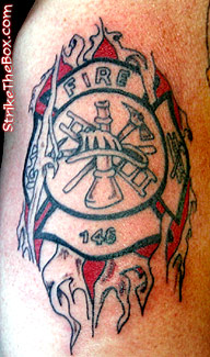 The collector of this tattoo is a firefighter with the Ottawa Fire Department. Tattoo Location: Bicept Year Inked: 2008