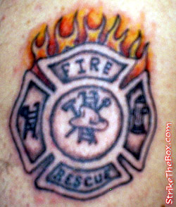 Matt Bailey Country: United States State: Missouri Fire Dept: Forsyth Fire Dept Year Started in Fire Service: 2004 Rank: Firefighter (private) Description: I wanted a simple fire tattoo to begin with, just something to commemorate my service to the community. Tattoo Location: right bicep Year Inked: 2009 Studio: Stingray's Tattoo Artist: Alan Glenn |