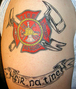 country: United States Fire Dept: Seville-Guilford Township State: Ohio Years on job: 8 rank: Firefighter (private) description: I got the Maltese cross as my first tattoo 7 years ago. I recently had it colored in and added the crossed axe and halligan. I also added the FIR NA TINE banner to pay tribute to my scottish background. studio: True Colorz in Lodi, Ohio artist: Mike Kane |