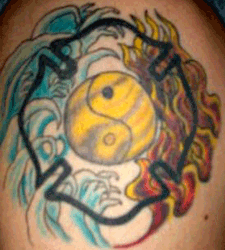 This tattoo belongs to Bob Christianson. Bob rides with the Copperas Cove Fire Department. His tattoo was inked at Incubius by Yanni.