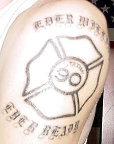 This tat that shows station pride belongs to Rory Marant, am a member of Elizabeth-Wirt VFD. The tattoo was done at Linda's Tattoo by an Artist named Chris Daley |