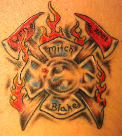 country: Canada Fire Dept: Wingham and Area Fire Dept. State: Ontario Years on job: 4 rank: Firefighter (private) description: I've wanted a Maltese Cross since joining and finally found one I liked and customized it to represent my two boys, my fire hall and my start date! studio: Exotic Skin Shop (Kitchener, King St.) artist: Tim Karn |