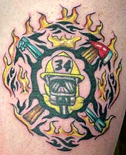 Dave Green from Wahpeton, North Dakota "I got this Tattoo at Addictions Tattoo's in Fargo, North Dakota in November of 2002. I have been a member of the Wahpeton Volunteer Fire Department since 1995 I plan on having an American flag added behind the Maltese sometime in the future. Thanks for the great website. Dave" |