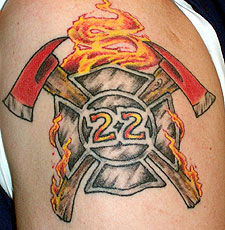 This great classic design belongs to Denis Huelsmann. A Firefighter with the Breese fire Dept, Breese,Il Inkwell tatoo Faiview Heights,IL artist Brad Hume |