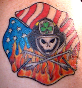 country: United States Fire Dept: Dekalb County ( Atlanta ) State: Georgia Years on job: 13 rank: Firefighter (private) description: My own design that's centered around our Company Haz-Mat patch. This patch covers a lot of themes so I guess it's kind of hard to categorize. Probably going to change the blue color until I get the correct indigo color of our beloved flag. I really enjoy your site and the tats the brothers and a few sisters submit. I especially enjoy the tribute work. Shall we never forget our Brothers. studio: Ink Wizard Conyers Ga artist: Derrick |