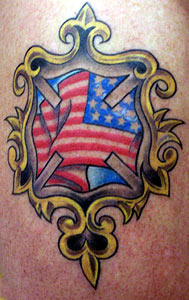 Country: United States Fire Dept: Rural/Metro Fire Dept. State: Tennessee Years on job: 20 rank: Other description: I wanted a Maltese Cross with the American flag waving in it, bordered with Old School Gold Leaf. Tattoo Location: Upper Arm Studio: Saint's Tatto (Knoxville, TN) Artist: Matt Burns |