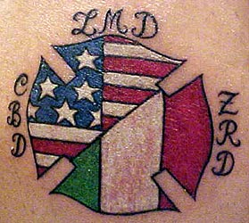 This was sent to us by a career firefighter from Palm Beach county fire/rescue, FL. Inked by Rob Soli at funhouse tattoos in ft. Lauderdale, fla. "This ws done to show my love and loyalty for my family, my heritage, and my brotherhood. 343 forever" |