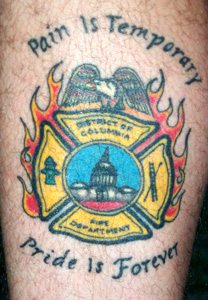 to us by Lieutenant Greg Dypsky "I chose this tattoo as a tribute to the many veterans of the DCFD. It was inked by Kevin Posey from St. Mary's County, MD." |