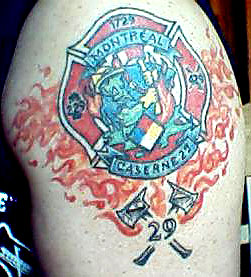 Gerry Country: Canada Fire Dept: Montréal Fire dept. State: Quebec Years on job: 20 rank: Firefighter (private) Description: fire station 29 (hazmat team) logo Tattoo Location: left arm Studio: KiKi tattoo Artist: Martin |