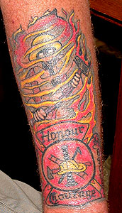 Country: Canada Fire Dept: Rideau Lakes State: Ontario Years on job: 2 Rank: Captain Description: a maltese cross with Fire, Rescue, Honour, Courage and a firefighter coming out of the flame on top. Tattoo Location: left forearm Year Inked : 2005 Studio: express you tattoo Artist: Kathy Humphry |