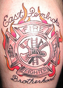 Country: United States Fire Dept: East Pembroke Vol Fire Dept State: New York Years on job: 8 years rank: Captain Description: The boys decided on this tattoo for a bonding moment Tattoo Location: left upper arm Studio: Physical Graffiti Artist: NEWT |