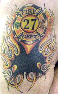 This unique design belongs to Barry P. from the East Derry Fire Department in New Hampshire. It was inked at Gothic Tattoo. |
