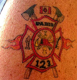country: Canada Fire Dept: Paris State: Ontario Years on job: 27 rank: Firefighter (private) description: Done at a tattoo party on June 25, 2004 at the Paris Firehall studio: Tattoos by Fritter artist: Fritter |