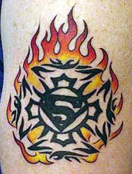 This great tatt belongs to Darren Wells from Lakeport Fire. "It is the maltese cross and a superman S with flames" |