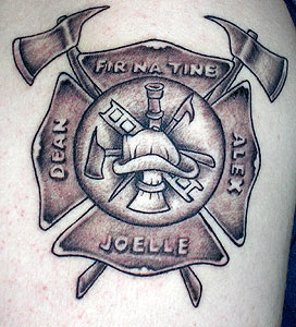 Ryan Thiessen Country: Canada Fire Dept: Dalmeny Volunteer Fire Department State: Saskatchewa Years on job: 3 rank: Firefighter (private) Description: I wanted to commemerate the significance of my two life passions...my family and my service on the department. Tattoo Location: Upper right arm Studio: Ink Chamber Artist: Craig Fenrick |