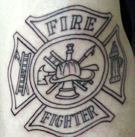 This tattoo belongs to Jay Woith of The Central Stickney Fire Protection District, IL in unincorportated Cook County. The Tattoo is not done yet. It will have the background inked in with an American Flag. It was inked by Kurt at Tattoo Illusions in Justice, IL. |